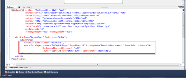 The screenshot below shows the XAML of the Silverlight page: