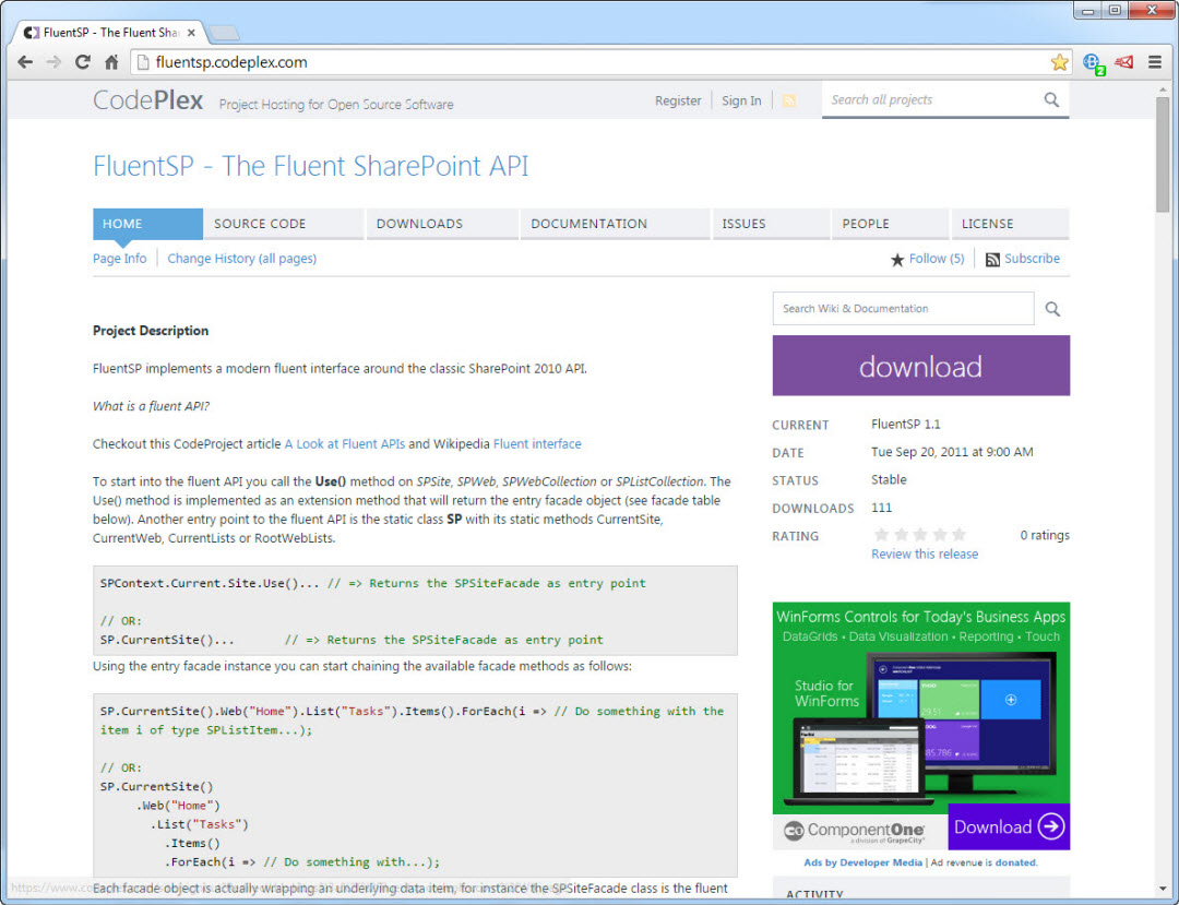 Check out the project site at GitHub for more sample code and information.