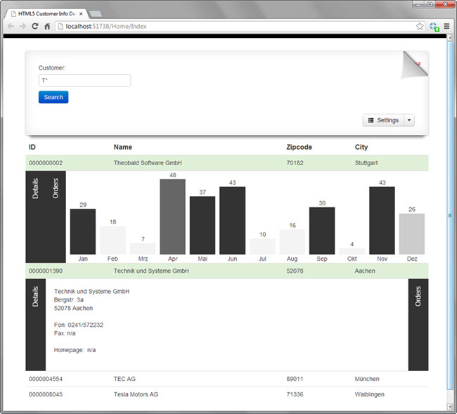 In 2012 I created two HTML5 sample web applications with stunning visual effects. The demos are displaying SAP customer and stock quantity data in real time. The SAP/.NET connectivity is handled by the ERPConnect library from Theobald Software.