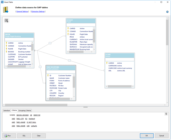 In 2015 I developed a visual table join query builder as part of the Xtract IS product suite. The component allows to visually design table join queries by selecting SAP tables, defining the relationships, adding output fields and limiting criteria. The builder also contains a criteria designer to visually define the WHERE and HAVING clause for the final join statement.