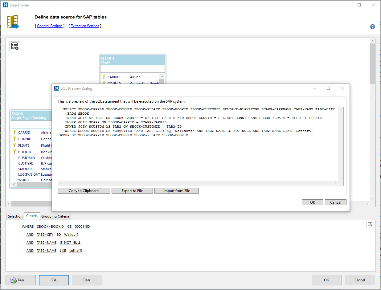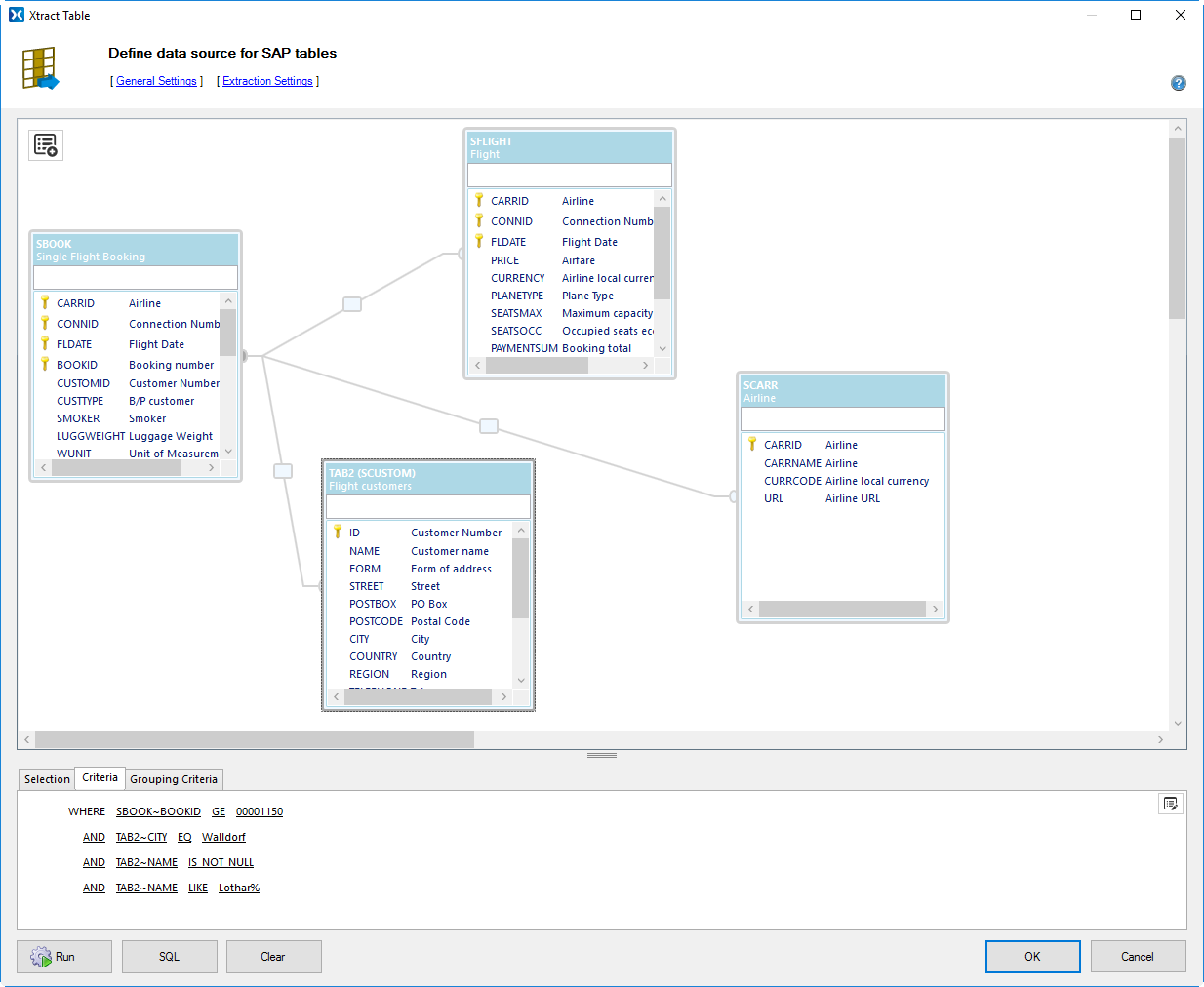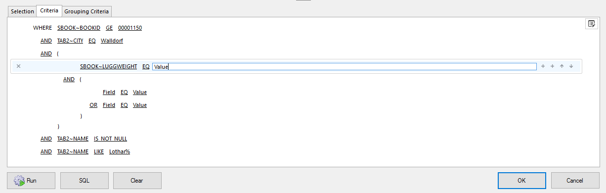 In 2015 I developed a visual table join query builder as part of the Xtract IS product suite. The component allows to visually design table join queries by selecting SAP tables, defining the relationships, adding output fields and limiting criteria. The builder also contains a criteria designer to visually define the WHERE and HAVING clause for the final join statement. The criteria parts can be grouped in any possible way.