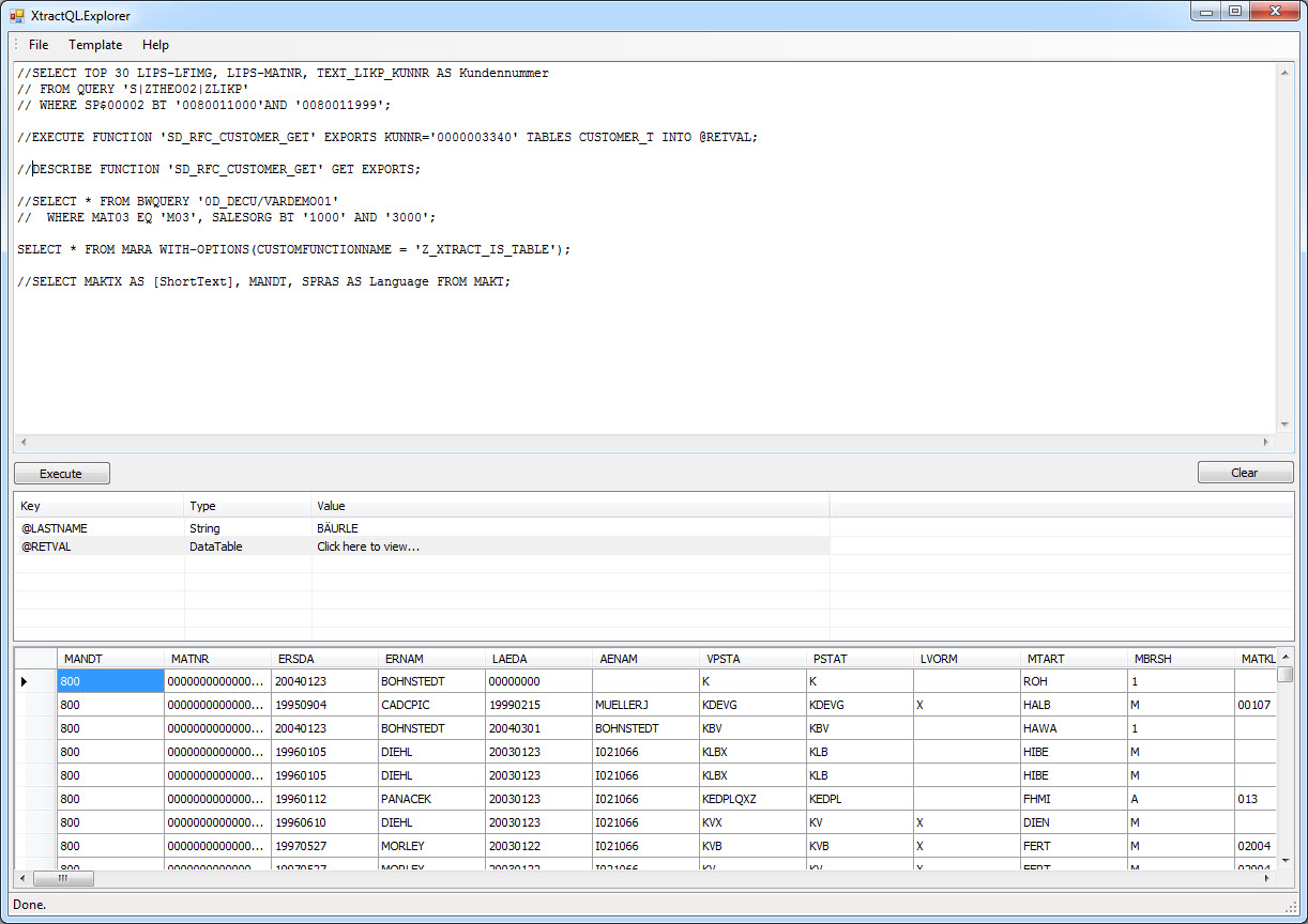 A few years ago I developed XQL, the Xtract Query Language (XtractQL), which got integrated in various Theobald products in the meatime in order to dynamically retrieve SAP business data by using a simple query language. The XtractQL syntax combines elements from the SQL and ABAP languages and can be used on: